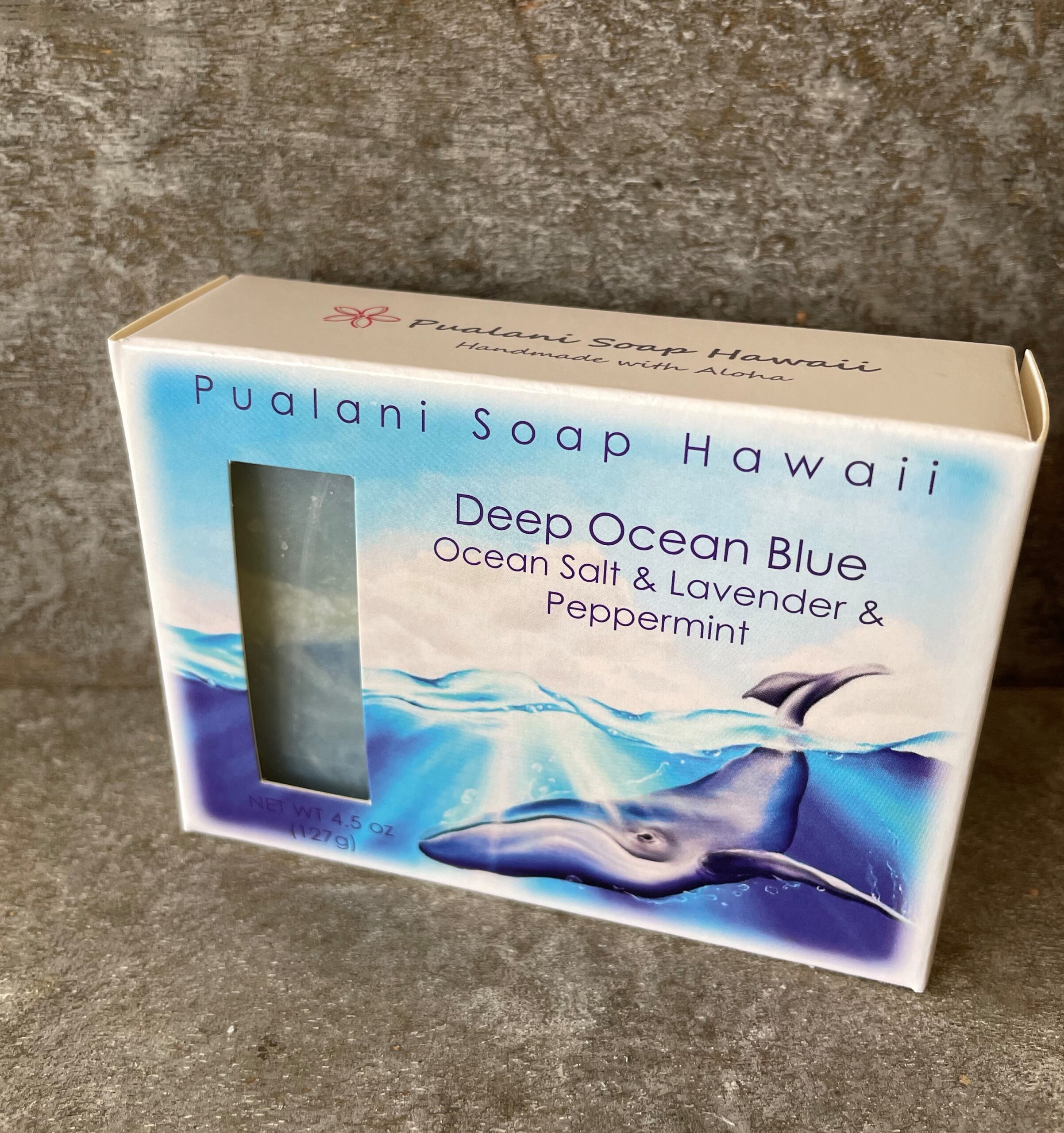 Deep Ocean Blue Soap is made with Hawaiian deep ocean salt from Big Island. It purifies and refreshes your soul mind & body. The soap has very unique and refreshing scent from pure peppermint and lavender oils. Very popular “Men” soap. Great for face and body. It is also great choice for skin issues such as Eczema.