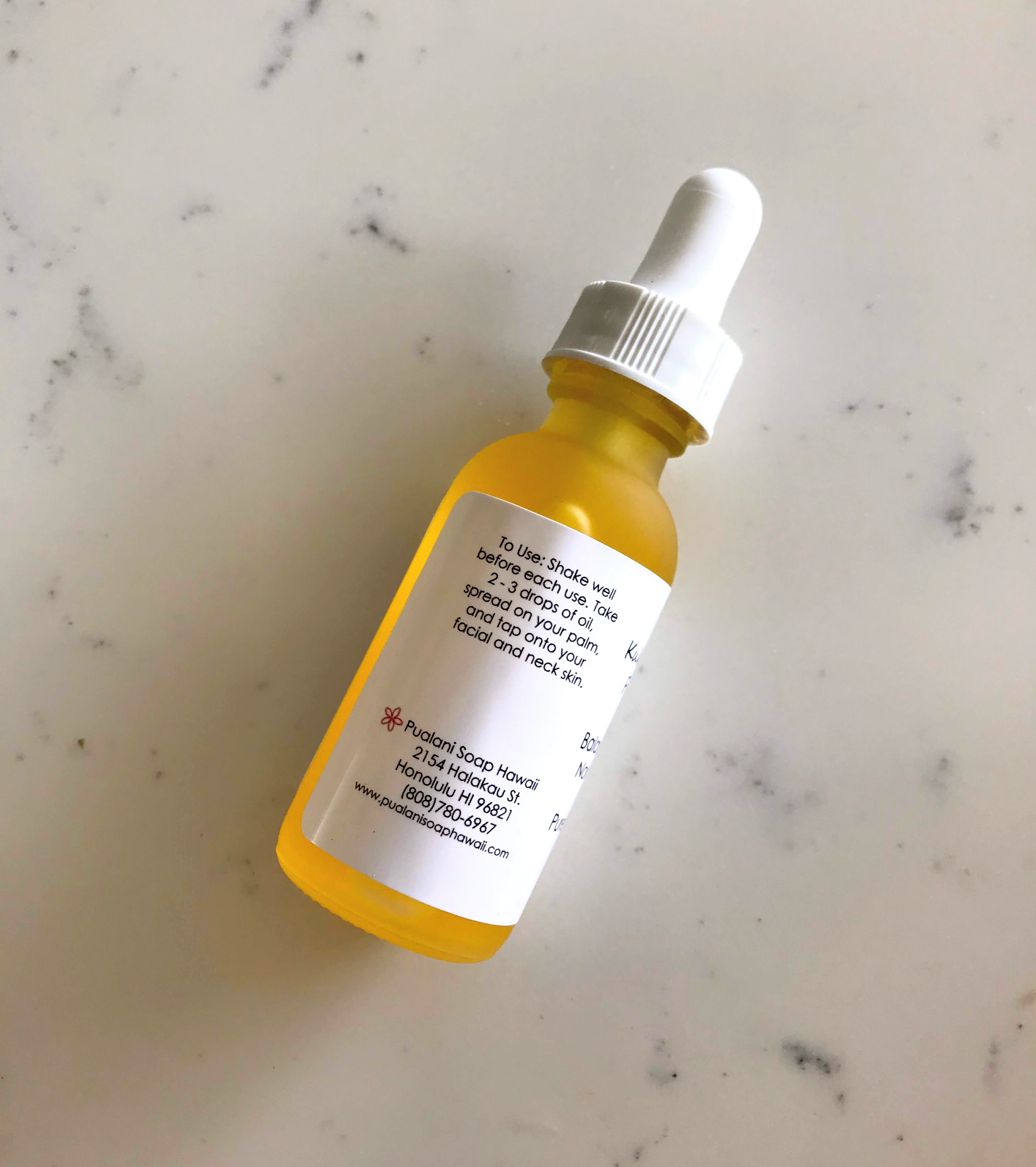 Made with Hawaiian Kukui Nut and Olive Squalane Oils. Anti-aging, balancing, rejuvenating, moisturizing and protective for normal to dry skin type. It is the best to use after cleansing your face, in the morning and evening to condition and nourish your skin. It is also great to apply after shaving, or used as beard oil to condition. For the best results, use our handcrafted soap to cleanse your skin, followed by our Anti-Aging Face & Neck Cream.