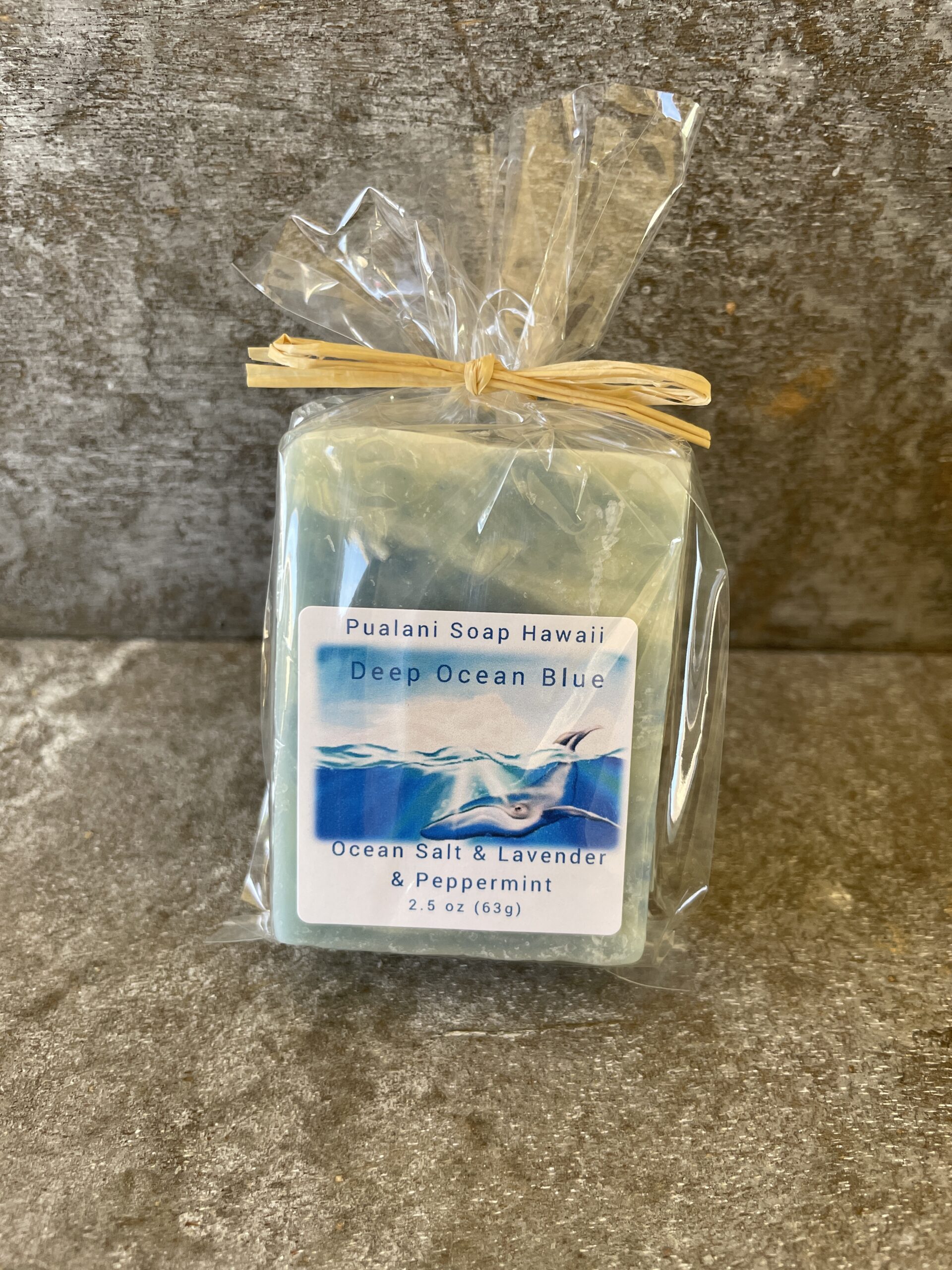 Deep Ocean Blue Soap is made with Hawaiian deep ocean salt from Big Island. It purifies and refreshes your soul mind & body. The soap has very unique and refreshing scent from pure peppermint and lavender oils. Very popular “Men” soap. Great for face and body. It is also great choice for skin issues such as Eczema.